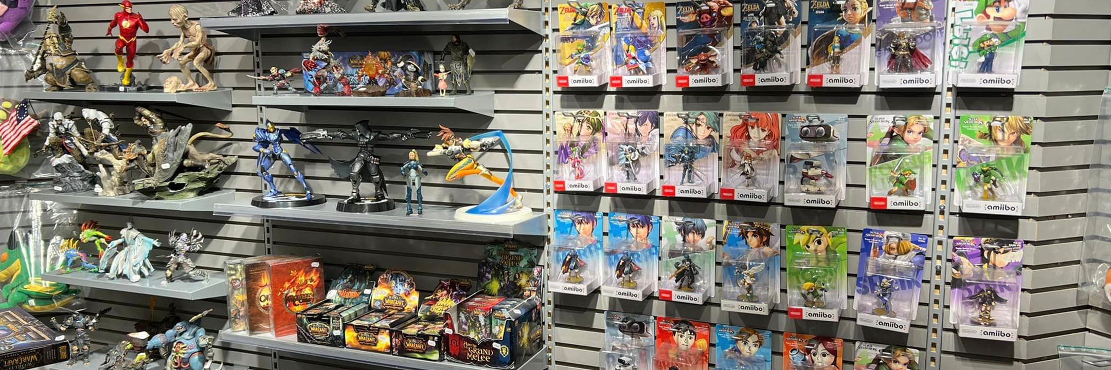 - Mange populære figurer, collectors editions, Funko Pop!, og spillmerchandise.